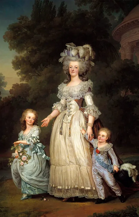 In 18th-century France, lace was a fixture of courtly dress. Marie Antoinette, herself a fashion icon of the Rococo age, frequently wore gowns and fichus edged in Chantilly lace, a style prized for its fine net background and scrolling floral motifs. Produced originally in silk, Chantilly lace was celebrated for its ability to catch the light while still conveying a sense of softness and subtlety. Worn at the collar, sleeve, or veil, lace was as much about suggestion as display—a sheer veil of luxury that hinted rather than declared.