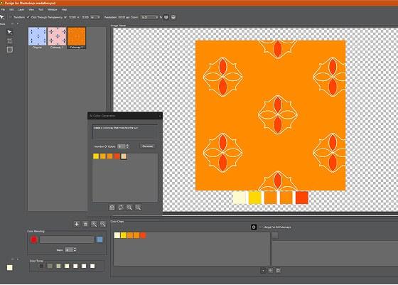 Generate colorways instantly with AI. Enter a text prompt, click Generate, and preview three new colorways of your design. Select the ones you want to keep or cycle through more until you find the perfect match. Overcome creative block and create theme-specific palettes faster than ever—without endless searching for references.